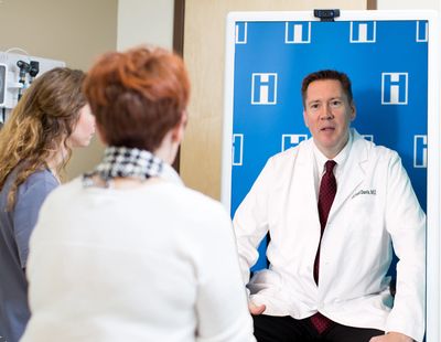 IHP physicians use professional lighting, microphones, and client branded backdrops to provide a clear and personal experience with the patient.